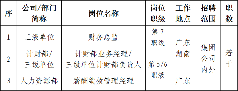 根據(jù)工作需要和公司招聘管理相關(guān)規(guī)定,現(xiàn)對廣東公司(海外公司)本部及下屬單位共3個崗位進(jìn)行公開招聘。