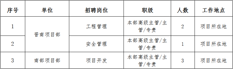 根據(jù)發(fā)展需要,現(xiàn)面向集團(tuán)公司系統(tǒng)內(nèi)外進(jìn)行招聘。具體事項(xiàng)公告如下:
