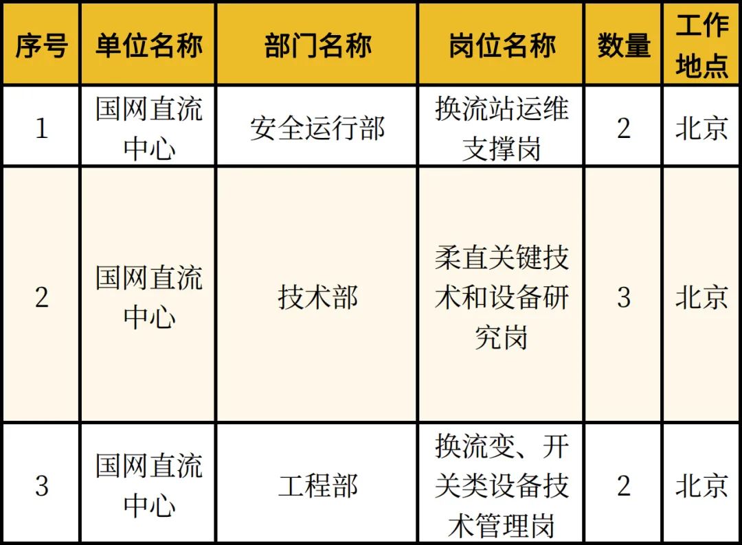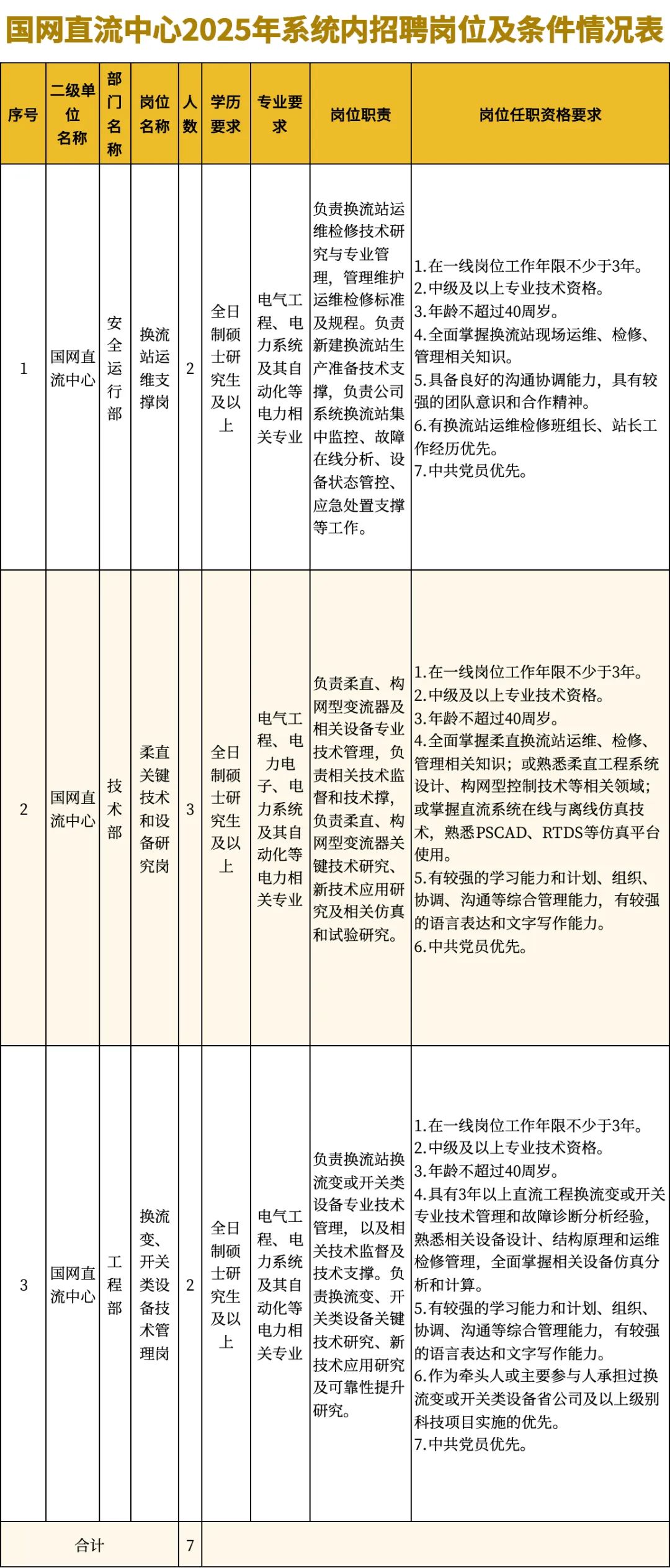 1.國(guó)網(wǎng)直流中心2025年系統(tǒng)內(nèi)公開招聘崗位及任職資格情況表