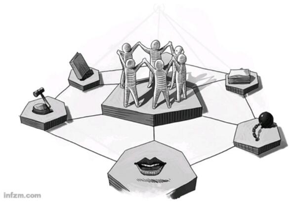 既然是“自由人的聯(lián)合體”,則個體應(yīng)該是“自由”的,不應(yīng)該受限于來自中心化的機構(gòu)、組織等的統(tǒng)治和管理。按照馬克思主義經(jīng)典作家的設(shè)計,在共產(chǎn)主義社會里“對人的統(tǒng)治將由對物的管理和對生產(chǎn)過程的領(lǐng)導(dǎo)所代替”,由于階級對立而產(chǎn)生的所有強制手段已經(jīng)“放到古物陳列館去,同紡車和青銅斧陳列在一起”。當(dāng)然,承擔(dān)某些協(xié)作功能的社會組織還會存在,但作為個體的“自由人”可以自主選擇組織,可以自行成立組織,獨立行使權(quán)利。區(qū)塊鏈本身就是這樣一種“去中心化”或“多中心化”的結(jié)構(gòu):沒有唯一的“主機”;每個節(jié)點都可以承擔(dān)“主機”的功能;任何一個節(jié)點的關(guān)閉、故障等都不會影響整個區(qū)塊鏈的運行(離了誰地球都一樣轉(zhuǎn))等等。區(qū)塊鏈,就是“沒有中心強制的自由節(jié)點的聯(lián)合體”。比特幣的創(chuàng)始人始終不現(xiàn)真身,到最后連在虛擬世界里也銷聲匿跡,只留下一個“中本聰”的化名在江湖流傳,使比特幣不但“去中心化”,而且“無創(chuàng)始人”。