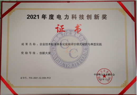 北京中電普華信息技術有限公司參與申報的《企業(yè)技術標準體系化實施評價模式研究與典型實踐》項目榮獲2021年度電力科技創(chuàng)新獎大獎。