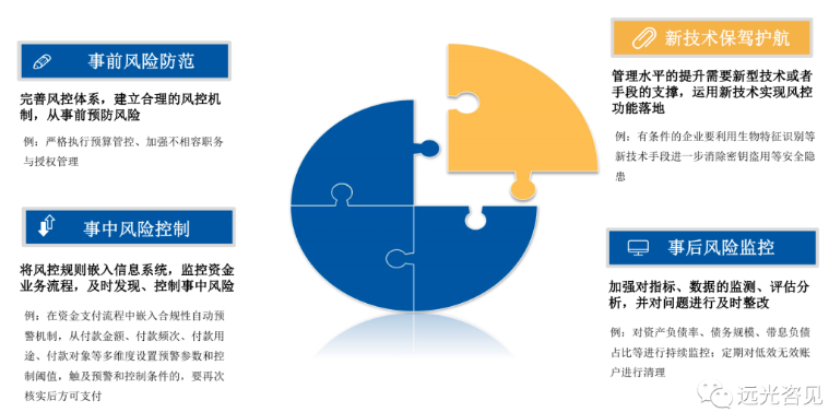 總體來(lái)講,建議電力企業(yè)集團(tuán)根據(jù)監(jiān)管要求,結(jié)合自身管理特點(diǎn)和業(yè)務(wù)實(shí)際情況,對(duì)資金或司庫(kù)管理體系的風(fēng)控職能進(jìn)行統(tǒng)籌規(guī)劃,有些監(jiān)管要求的達(dá)成需要基于企業(yè)業(yè)務(wù)線上化基礎(chǔ),例如“實(shí)現(xiàn)事前事中事后的全過(guò)程監(jiān)控和各層級(jí)資金動(dòng)向的穿透式監(jiān)控”,這需要企業(yè)資金業(yè)務(wù)活動(dòng)過(guò)程文檔均已線上留痕才能實(shí)現(xiàn)推進(jìn)落地,以實(shí)現(xiàn)有效防范資金風(fēng)險(xiǎn)的目標(biāo)。