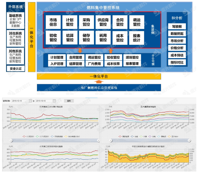 為積極響應推動信息技術與制造業(yè)深度融合、打造數(shù)字經(jīng)濟新優(yōu)勢的政策號召,滿足新時期對火電燃料管理的新要求,遠光軟件充分發(fā)揮多年電力企業(yè)信息化建設的成功經(jīng)驗,精準把握電力數(shù)字化發(fā)展趨勢,在國內率先提出“統(tǒng)一平臺、集中管控、分級應用”的大集中燃料管理解決方案——集團燃料集中管控系統(tǒng),對燃料計劃、供應商、采購合同、調運、驗收管理、煤場及耗用、廠內費用、結算、成本核算、統(tǒng)計分析等燃料全過程業(yè)務進行有效控制和管理。