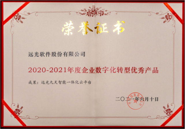憑借強大的技術能力、協(xié)同創(chuàng)新能力和潛在應用價值,遠光九天平臺獲得了大會組委、活動評審和眾多企業(yè)、客戶的一致認可,獲選“2020-2021年度企業(yè)數(shù)字化轉型優(yōu)秀產品”。
