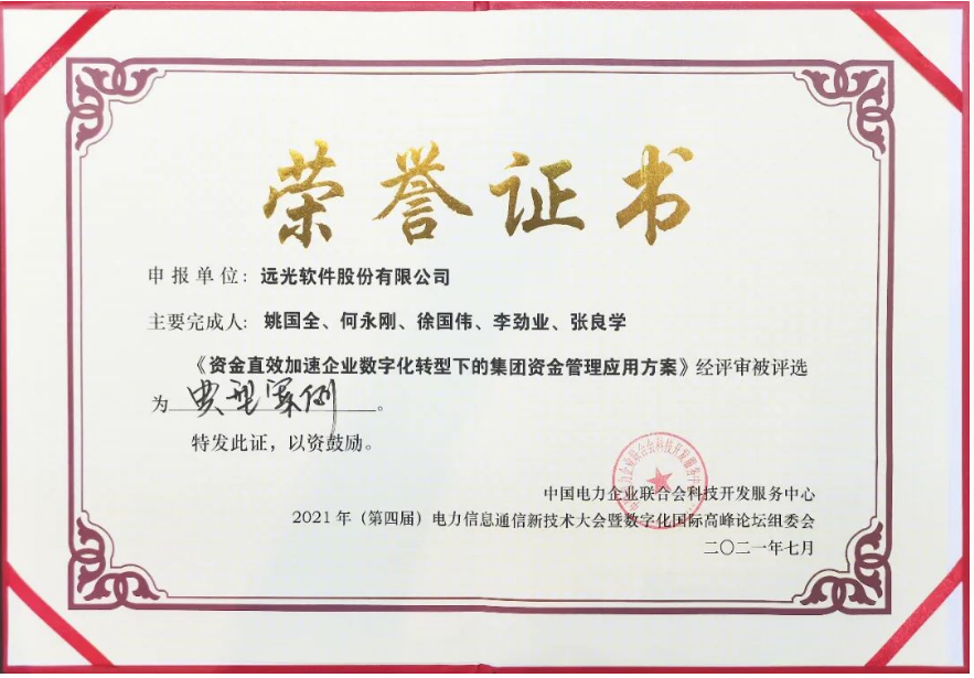 大會(huì)同期召開(kāi)電力企業(yè)數(shù)字化轉(zhuǎn)型案例終審評(píng)審會(huì),并在會(huì)上公布最終獲選的優(yōu)秀案例和典型案例名單。本次案例征集活動(dòng)致力于協(xié)同推進(jìn)電力行業(yè)數(shù)字化轉(zhuǎn)型和數(shù)字產(chǎn)業(yè)化發(fā)展,展示企業(yè)數(shù)字化轉(zhuǎn)型背景下的電力行業(yè)最新成果。遠(yuǎn)光軟件自主研發(fā)的“資金直效加速企業(yè)數(shù)字化轉(zhuǎn)型下的集團(tuán)資金管理應(yīng)用方案”、協(xié)助支持的客戶(hù)項(xiàng)目“智慧財(cái)務(wù)經(jīng)營(yíng)大數(shù)據(jù)分析應(yīng)用”、“電力智慧共享財(cái)務(wù)管理平臺(tái)”,憑借新技術(shù)應(yīng)用和顯著的應(yīng)用價(jià)值,皆入選為“典型案例”。