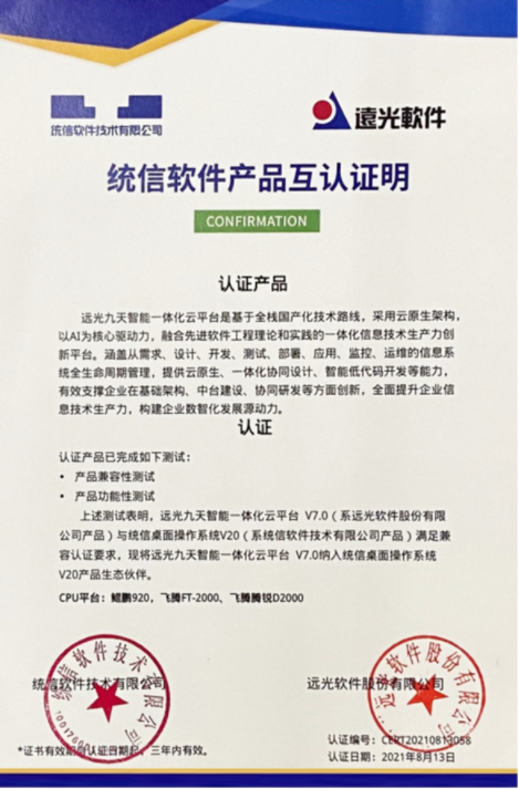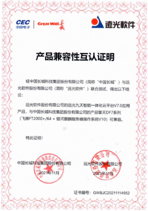 據(jù)遠光軟件相關負責人介紹,遠光九天云平臺以“使用國產(chǎn)化的工具研發(fā)國產(chǎn)化的系統(tǒng)運行在國產(chǎn)化的基礎設施之上”為目標,已經(jīng)和信創(chuàng)路線中的絕大部分廠商完成了互信認證,包括華為鯤鵬服務器芯片、銀河麒麟服務器操作系統(tǒng)、統(tǒng)信桌面操作系統(tǒng)、達夢數(shù)據(jù)庫、中創(chuàng)中間件、360安全瀏覽器等,實現(xiàn)全棧式國產(chǎn)化適配,累計獲得兼容性互認證書達35份。全面達到國產(chǎn)軟硬件平臺的通用兼容性要求,性能及可靠性得到全面驗證。階段性成果標志著遠光九天云平臺已構(gòu)建起“全棧式、全過程、全方位”的信創(chuàng)生態(tài)體系,在全面支持國產(chǎn)化方面邁出了關鍵一步。