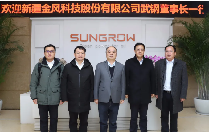 1月5日,新疆金風科技股份有限公司董事長武鋼一行到訪陽光電源,與陽光電源董事長曹仁賢座談。雙方就“十四五”期間進一步加大新能源領(lǐng)域全球合作展開深入交流,達成一系列重要共識。金風科技風電產(chǎn)業(yè)集團副總經(jīng)理陳秋華,陽光電源副總裁彭超才等出席座談會。