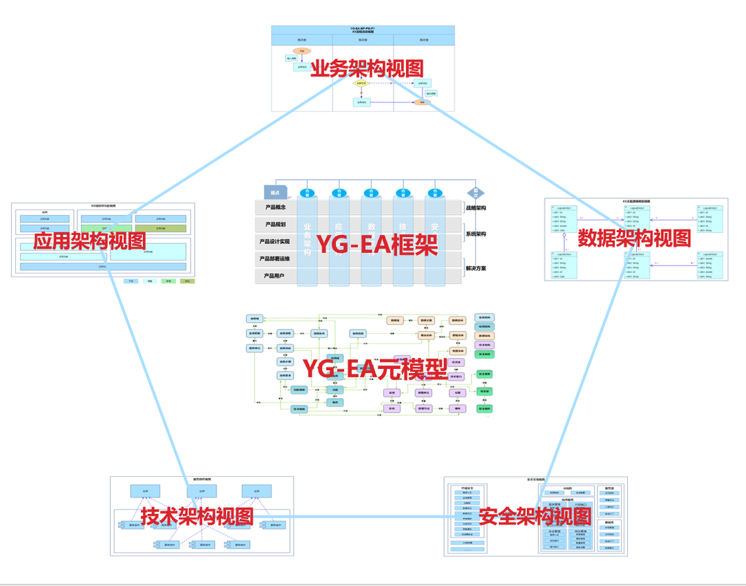 YG-EA是遠(yuǎn)光軟件基于TOGAF企業(yè)架構(gòu)框架標(biāo)準(zhǔn),根據(jù)自身積累的架構(gòu)設(shè)計(jì)和系統(tǒng)研發(fā)經(jīng)驗(yàn)而研發(fā)的一套企業(yè)架構(gòu)框架,包括38個(gè)架構(gòu)對(duì)象和33個(gè)架構(gòu)視圖,每一個(gè)視圖都提供視圖模板樣例,架構(gòu)設(shè)計(jì)師只需依照視圖模板樣例繪制即可快速高效地完成企業(yè)架構(gòu)設(shè)計(jì),更好地滿足企業(yè)IT系統(tǒng)架構(gòu)設(shè)計(jì)的新要求。