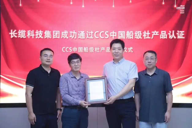 經(jīng)過(guò)前期嚴(yán)格的質(zhì)量檢驗(yàn)與評(píng)估,長(zhǎng)纜科技首套產(chǎn)品成功通過(guò)了中國(guó)船級(jí)社(CCS)檢驗(yàn)。2024年6月7日,中國(guó)船級(jí)社(CCS)武漢分社長(zhǎng)沙檢驗(yàn)處向長(zhǎng)纜科技頒發(fā)產(chǎn)品檢驗(yàn)證書(shū)。
