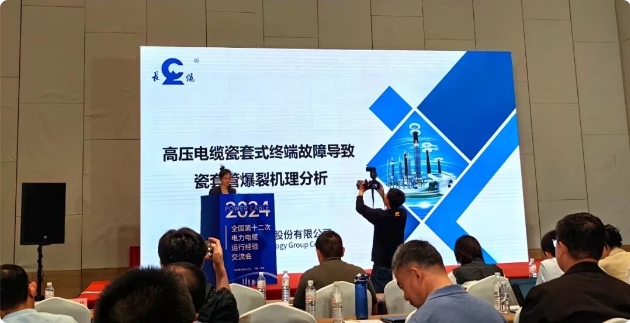 長纜科技技術(shù)代表在會場進行《高壓電纜瓷套式終端故障導(dǎo)致瓷套管爆裂機理分析》主題分享,與現(xiàn)場專家、嘉賓共同探討電纜線路安全運行重要問題,以期共同促進原創(chuàng)技術(shù)攻關(guān)和產(chǎn)業(yè)鏈高質(zhì)量發(fā)展。