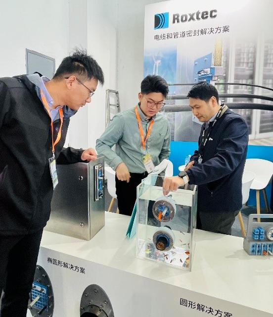 大批風(fēng)電設(shè)備制造商、開發(fā)商及技術(shù)專家蒞臨參觀。國(guó)內(nèi)某風(fēng)電整機(jī)廠技術(shù)專家表示:“以往項(xiàng)目中,不同規(guī)格管線要匹配不同密封件,選型、庫(kù)存管理都很繁瑣,Roxtec多徑技術(shù)直接解決了這個(gè)痛點(diǎn),對(duì)提升安裝效率很有幫助。”