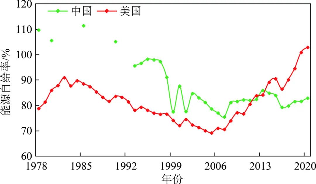 ▲中美能源自給率比較