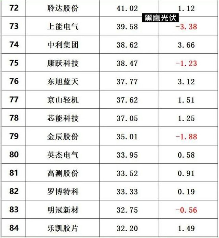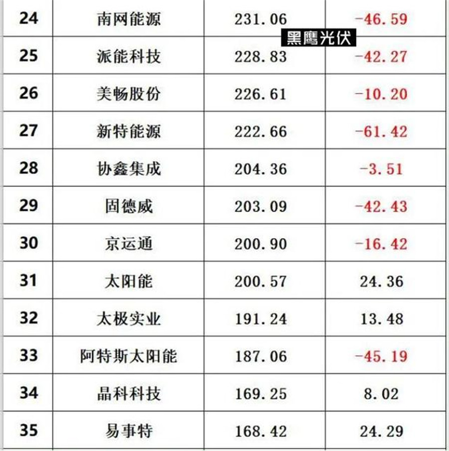 在黑鷹光伏整理出的最新的光伏總市值排行榜上,排在前15的企業(yè),總市值在過(guò)去幾個(gè)交易日里都出現(xiàn)了下跌