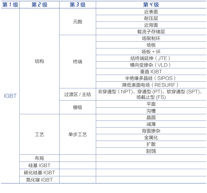 IGBT的技術(shù)分類表(部分)