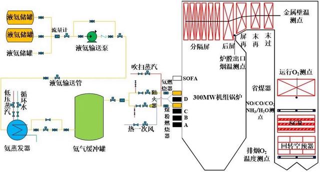 300兆瓦燃火電站鍋爐摻氨燃燒系統(tǒng)示意圖
