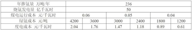 煤電燒氨經(jīng)濟(jì)性評(píng)估(年利用小時(shí)數(shù)3000小時(shí))