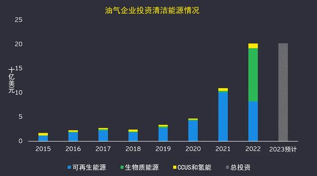 同時,過去七年中,油氣企業(yè)在各類清潔能源業(yè)務中的年度投資金額增長了約六倍,預計2023年已到達202億美元的水平。