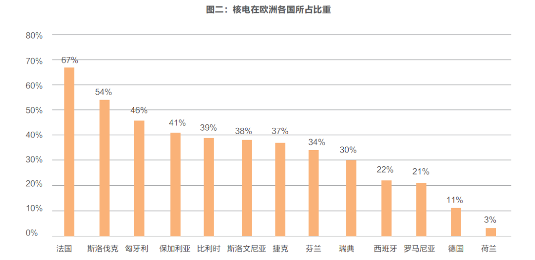 2021年,核能提供了歐盟約27%的電力供應(yīng),占其低碳電力的一半。其中,9個(gè)國家的核電比例超過30%。也就是意味著,如果歐盟脫離核電,需要為四分之一的電量尋找新的電源??梢钥隙ǖ氖?,這些電力無法被其他零碳能源迅速取代。