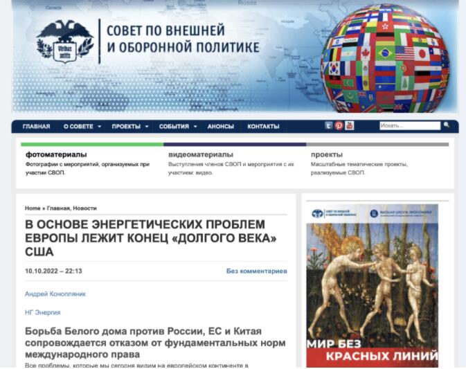 “歐洲的能源問題基于美國(guó)‘漫長(zhǎng)世紀(jì)’終結(jié)”,截圖來自“俄羅斯外交與國(guó)防政策委員會(huì)”網(wǎng)站