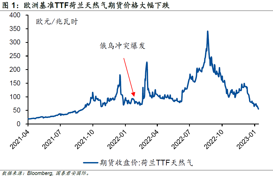 時(shí)至今日,俄烏沖突已經(jīng)持續(xù)將近一年的時(shí)間,原本歐洲主要的天然氣輸送管道“北溪”亦停運(yùn)超過(guò)4個(gè)月。在全球新增天然氣供應(yīng)量有限及寒冬的預(yù)期下,歐洲基準(zhǔn)TTF荷蘭天然氣期貨價(jià)格一度飆升至接近340歐元/兆瓦時(shí),為俄烏沖突爆發(fā)時(shí)的4倍左右。飆升的天然氣價(jià)格也成為了本輪全球范圍通脹走高的重要因素。