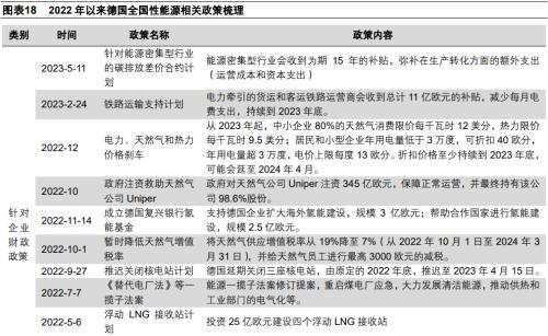 一是,大力投資可再生能源行業(yè),減少對石化能源的依賴。德國一直謀求能源轉(zhuǎn)型,希望實現(xiàn)能源自主。德國在2022年1月份起大力投資新能源汽車和相關(guān)基礎(chǔ)設(shè)施,2月23日提前減免可再生能源附加稅,7月德國聯(lián)邦會議上通過了一攬子能源轉(zhuǎn)型法案(包括《可再生能源法》、《陸上風(fēng)電法》、《替代電廠法》、《聯(lián)邦自然保護(hù)法》等),11月成立氫能基金,大力建設(shè)本國企業(yè)海外氫能產(chǎn)業(yè)鏈和其它國家氫能產(chǎn)業(yè)鏈。