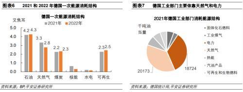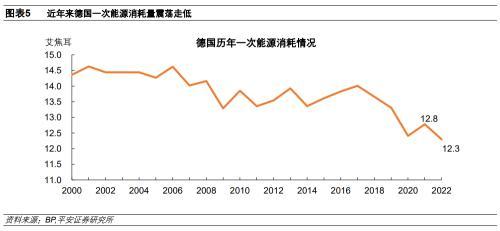 1)能源消費方面,2022年德國一次能源消費量同比下降3.8%,降至12.3艾焦耳;2022年德國天然氣消費量同比下降15.2%,降至2.8艾焦耳。