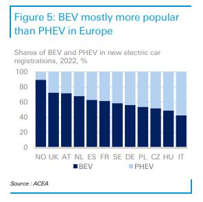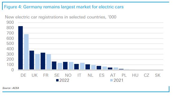 在歐洲,電動(dòng)汽車增長勢頭強(qiáng)勁,2022年純電動(dòng)汽車和插電式汽車市場份額為22.9%。在北歐,新注冊電動(dòng)汽車的市場份額最高。電動(dòng)汽車在東歐和南歐的市場份額仍然不足。購買價(jià)格高、收入低以及充電基礎(chǔ)設(shè)施不發(fā)達(dá)是造成這種情況的原因。
