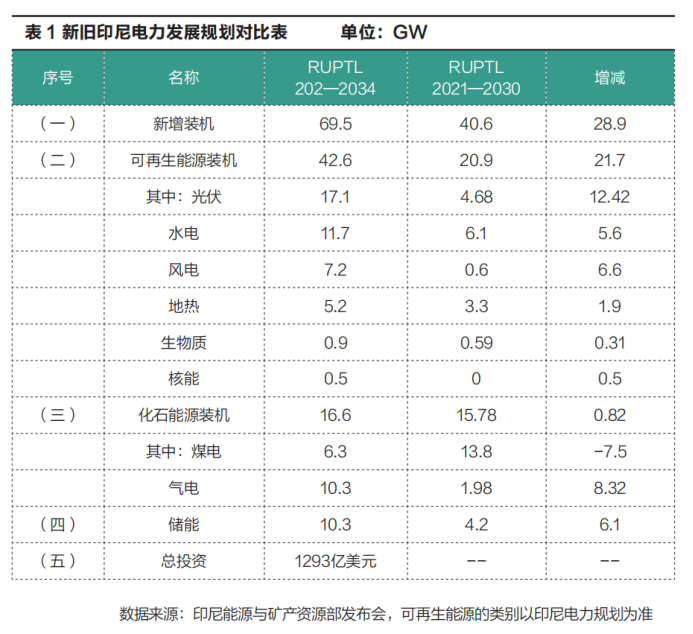 印尼清潔能源轉(zhuǎn)型受挫但目標(biāo)未變。2025年5月,印尼國(guó)家電力公司(PLN)正式發(fā)布了印尼電力發(fā)展規(guī)劃2025—2034(以下簡(jiǎn)稱為《RUPTL2025—2034》)。從這版規(guī)劃中可以看出,印尼政府的清潔能源轉(zhuǎn)型目標(biāo)并未改變,可再生能源裝機(jī)仍然會(huì)得到大力發(fā)展。燃煤發(fā)電機(jī)組大幅減少,氣電機(jī)組增加。對(duì)比十年規(guī)劃,可以看出印尼政府仍然會(huì)加大可再生能源裝機(jī)的投資規(guī)模。2025年至2034年期間,印尼投資建設(shè)的光伏、風(fēng)電裝機(jī)將大幅增加,煤電裝機(jī)將大幅減少。另外,印尼新版規(guī)劃中,約70%的投資額(949億美元)分配給了獨(dú)立發(fā)電商,其中新能源投資額為813億美元。印尼政府對(duì)未來(lái)經(jīng)濟(jì)增長(zhǎng)的樂(lè)觀支持著電力裝機(jī)的增長(zhǎng)。據(jù)稱,印尼如此大規(guī)模的電力發(fā)展計(jì)劃是為了支撐實(shí)現(xiàn)印尼2025—2029年間,年均增速8%的經(jīng)濟(jì)增長(zhǎng)目標(biāo)。