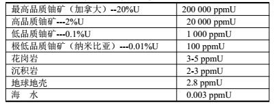 天然鈾的典型濃度