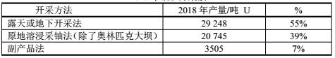 2018年世界鈾生產(chǎn)主要公司
