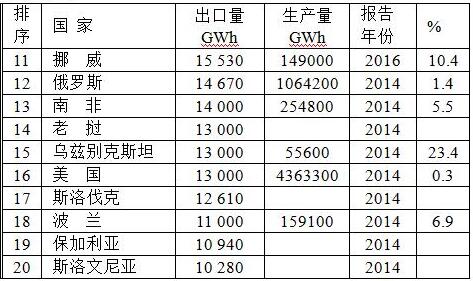 現(xiàn)在又看全球電力出口情況。表中%表示電力輸出量占該國生產(chǎn)量的份額。出口國約有95個(gè)國家或地區(qū),請點(diǎn)擊美國中央情報(bào)局網(wǎng)站:https://www.cia.gov/library/publications/the-world-factbook/rankorder/2234rank.html