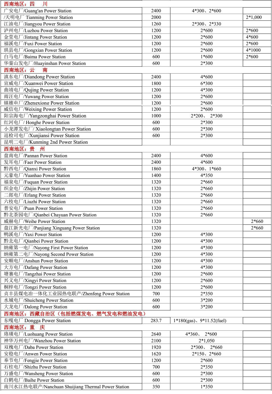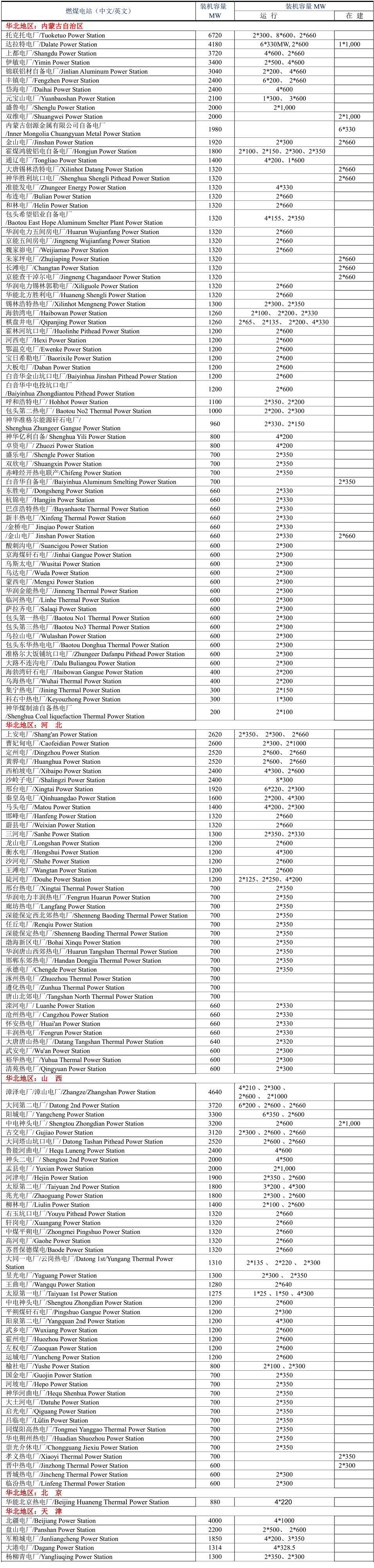 將中國一般劃分為七大地區(qū),列出2021年中國各省市燃煤電站,由于中國以燃煤發(fā)電為主,目前還在新建燃煤發(fā)電廠,因此不能保證本表完整無缺。