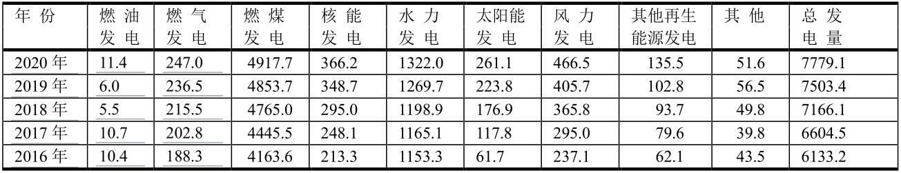 中國各種能源發(fā)電量(單位:TWh)
