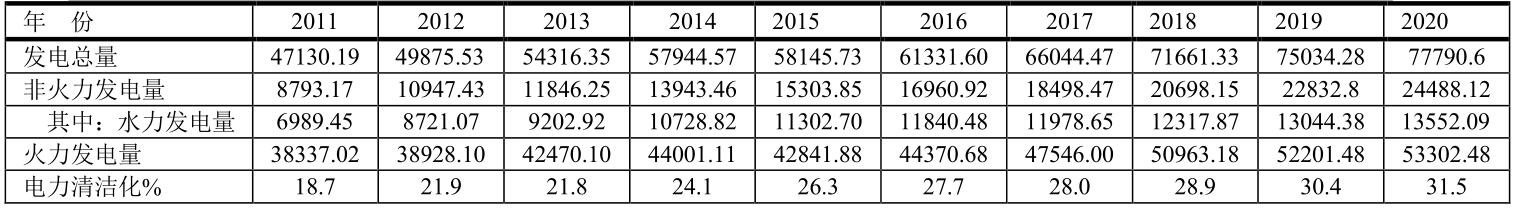 由于中國發(fā)電以化石燃料為主,特別是燃煤發(fā)電,電力清潔化程度進展較慢。電力清潔化%定義為:非火力發(fā)電量/發(fā)電總量。