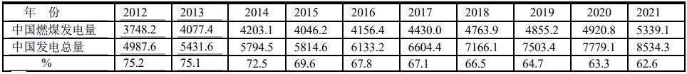 根據(jù)BP2022年報(bào)告,2021年中國(guó)燃煤發(fā)電占中國(guó)發(fā)電量5339.1/8534.3=62.6% ;中國(guó)燃煤發(fā)電占全球燃煤發(fā)電量5339.1/10244.0=52.1%;中國(guó)燃煤發(fā)電占全球發(fā)電總量5339.1/28466.3=18.8%。這組數(shù)據(jù)可以看出,中國(guó)燃煤發(fā)電不可小覷。