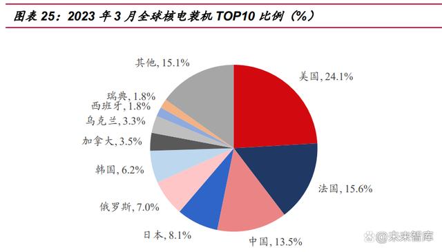 當(dāng)前全球都處在能源轉(zhuǎn)型的重要時期,核電作為清潔基荷能源的屬性得到重視。 美國、法國、日本、俄羅斯等曾經(jīng)在歷史上暫緩核電建設(shè)甚至退核的國家,均開始重 啟核電建設(shè),并制定實施一系列關(guān)于核能發(fā)展的戰(zhàn)略、措施和行動,紛紛提出更加積 極的發(fā)展目標(biāo)。 目前全球核電裝機(jī) 393GW,規(guī)模排名前五的國家分別為美國(95GW)、法國 (61GW)、中國(57GW)、日本(32GW)、俄羅斯(28GW),德國(4GW)作為 曾經(jīng)的核電大國目前正處于全面退核狀態(tài),印度(7GW)隨著國際貿(mào)易環(huán)境改善占比 有望逐漸提高。