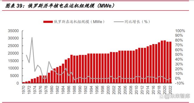 俄羅斯核電發(fā)電占比逐年穩(wěn)定攀升,目前是俄羅斯發(fā)電結(jié)構(gòu)中占比最高的清潔 能源。1986 年切爾諾貝利核電站事故后,俄羅斯核電發(fā)展趨緩,蘇聯(lián)解體后核電相 關(guān)資金短缺,直到 1990 年代開始向中國、伊朗、印度等國出口反應(yīng)堆,資金緊張情 況得到緩解,俄羅斯核電產(chǎn)業(yè)重新回到穩(wěn)定發(fā)展軌道。核電發(fā)電量占比由 1990 年的 11%,提升至 2020 年 20%。 2022 年 2 月,俄羅斯政府宣布將為新核能發(fā)展計劃撥款約 1000 億盧布(約 13 億美元),用以建造小型核電廠、建立閉式燃料循環(huán)技術(shù)平臺、研發(fā)新型核燃料等。 同年 8 月,俄羅斯國家原子能公司 Rosatom 宣布計劃設(shè)計并建設(shè)一種新型高溫堆, 主要目的在于擴(kuò)大制氫規(guī)模,計劃在 2030 年左右建成。
