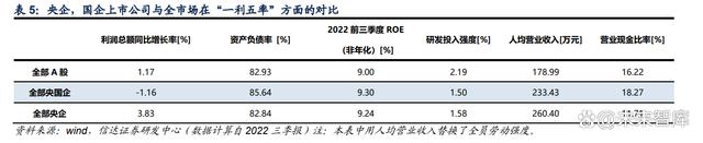 《方案》也要求深化解決部分中央企業(yè)內(nèi)部上市平臺(tái)定位不清、分布散亂、實(shí)力較弱的具體問(wèn)題,并提出了相應(yīng)的量化要求。而《方案》的改革重點(diǎn)由全部國(guó)企轉(zhuǎn)變?yōu)檠肫蠊荆覀?認(rèn)為這是基于央企控股上市公司的屬性。相對(duì)于國(guó)企上市公司,央企控股的背景意味著公司 的實(shí)際控制人為國(guó)資委,易于統(tǒng)一管理和直接考核,由此進(jìn)行下一步改革的力度深度或?qū)⒏?強(qiáng)。在引入積極股東環(huán)節(jié),完善企業(yè)治理結(jié)構(gòu),進(jìn)行企業(yè)制度創(chuàng)新等方面成效或更顯著。 近年來(lái),為推動(dòng)中央企業(yè)加快實(shí)現(xiàn)高質(zhì)量發(fā)展,國(guó)資委探索建立了中央企業(yè)經(jīng)營(yíng)指標(biāo)體系。 2020 年,首次形成“兩利三率”指標(biāo)體系,包括凈利潤(rùn)、利潤(rùn)總額、營(yíng)業(yè)收入利潤(rùn)率、資產(chǎn)負(fù) 債率和研發(fā)經(jīng)費(fèi)投入強(qiáng)度。2021 年,為引導(dǎo)中央企業(yè)提高生產(chǎn)效率,增加了全員勞動(dòng)生產(chǎn) 率指標(biāo),完善為“兩利四率”。2022 年,針對(duì)“兩利四率”指標(biāo),進(jìn)一步提出“兩增(利潤(rùn)總額和 凈利潤(rùn)增速高于國(guó)民經(jīng)濟(jì)增速)一控(控制好資產(chǎn)負(fù)債率)三提高(營(yíng)業(yè)收入利潤(rùn)率、全員 勞動(dòng)生產(chǎn)率、研發(fā)經(jīng)費(fèi)投入進(jìn)一步提高)”的總體要求。2023 年的中央企業(yè)負(fù)責(zé)人會(huì)議上, 國(guó)資委在總結(jié)近幾年工作成效基礎(chǔ)上,對(duì)中央企業(yè)經(jīng)營(yíng)指標(biāo)體系進(jìn)行了優(yōu)化調(diào)整,將“兩利 四率”調(diào)整為“一利五率”。 “一增”即確保利潤(rùn)總額增速高于全國(guó) GDP 增速;“一穩(wěn)”即企 業(yè)資產(chǎn)負(fù)債率總體保持穩(wěn)定;“四提升”即凈資產(chǎn)收益率、研發(fā)經(jīng)費(fèi)投入強(qiáng)度、全員勞動(dòng)生產(chǎn)率、營(yíng)業(yè)現(xiàn)金比率 4個(gè)指標(biāo)進(jìn)一步提升。