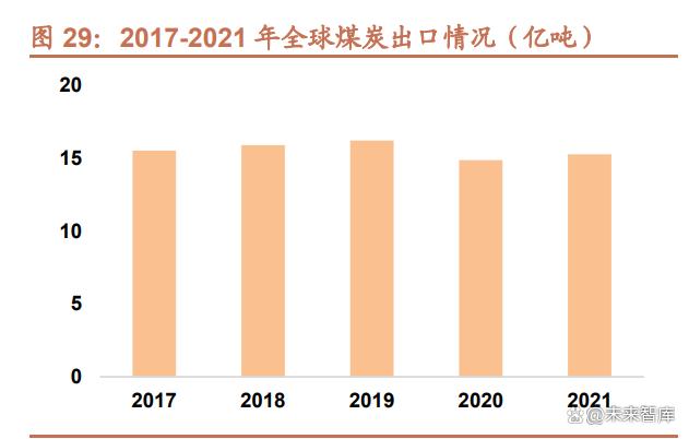 地緣政治局勢變化影響能源市場,全球動力煤價格高企抬升中國動力煤進(jìn)口成本。受疫情影響,2020 年以來全球煤 炭出口數(shù)量持續(xù)下降,2020 年全球煤炭出口總量為 14.86 億噸,較 2019 年下降 8.3%,2021 年回升至 15.27 億噸, 但仍低于 2019 年水平。而地緣政治局勢的惡化則進(jìn)一步影響了煤炭市場,2022 年動力煤供應(yīng)進(jìn)一步惡化。2022 年 1 月,印尼政府為緩解國內(nèi)電廠缺煤形勢宣布 1 月內(nèi)禁止出口煤炭,引發(fā)國際煤炭市場震蕩,海運(yùn)煤市場供給大幅減 少,煤價開啟上行之路。2022 年 2 月,俄烏沖突爆發(fā),美國與歐盟對俄羅斯實(shí)行能源禁運(yùn),俄羅斯 3 月以來煤炭、 石油、天然氣出口量均大幅下降,煤炭出口的下降直接沖擊了全球動力煤市場,而天然氣出口的下降使得歐洲出現(xiàn)較 大程度的能源短缺,歐洲多國被迫重拾其他替代能源,煤電也包括在內(nèi),根據(jù)國際能源署的統(tǒng)計,2022 年歐洲燃煤 發(fā)電量同比增長 6%,歐洲能源結(jié)構(gòu)的變化加劇了全球煤炭供給的短缺。2022 年中國的動力煤進(jìn)口成本飆升。