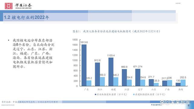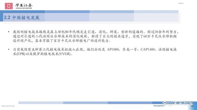 2016~2020年,美國西屋的AP1000和法國電力集團的 EPR三代核電技術全球首堆先后在我國成功建成投產(chǎn)。 我國在過去近40年中,成為全球唯一一個從沒有中斷核 電項目建設的國家,且掌握了建造世界主流核電機型的 能力,施工能力卓越,對于核電項目的建設有先進管理 理念和豐富的經(jīng)驗,對核電工期具備強有力的掌控能力。
