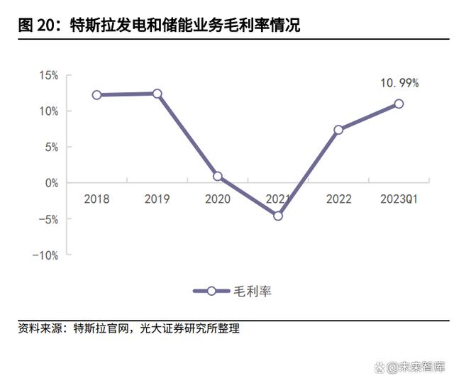 特斯拉發(fā)電和儲(chǔ)能業(yè)務(wù)營(yíng)業(yè)收入除2019年外均穩(wěn)健增長(zhǎng),2020年到2022年增速均超過(guò)30%,發(fā)電和儲(chǔ)能業(yè)務(wù)毛利率在2019年-2021年有所下降,2022-2023第一季度明顯回升。在新能源大規(guī)模裝機(jī)和電網(wǎng)加大投資的背景下,家用級(jí)、商用級(jí)和公用級(jí)能源產(chǎn)品需求量不斷提升,儲(chǔ)能裝機(jī)量自2018年起逐年增加。2023年第一季度特斯拉該業(yè)務(wù)實(shí)現(xiàn)營(yíng)業(yè)收入13.61億美元,同比增長(zhǎng)148.21%,毛利率為10.99%。2023年4月,特斯拉宣布在中國(guó)上海新建儲(chǔ)能超級(jí)工廠(Megafactory),計(jì)劃于2024年第二季度投產(chǎn),初期規(guī)劃公用儲(chǔ)能電池年產(chǎn)量達(dá)1萬(wàn)臺(tái),儲(chǔ)能規(guī)模近40GWh,和2022年相比產(chǎn)能直翻六倍多,儲(chǔ)能市場(chǎng)前景廣闊。
