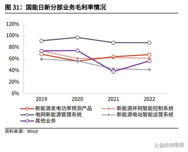 分部業(yè)務(wù)和毛利率微電網(wǎng)產(chǎn)品和系統(tǒng)業(yè)務(wù)持續(xù)發(fā)力,軟件產(chǎn)品逐步升級(jí)。公司于2020年變更分產(chǎn)品收入的統(tǒng)計(jì)口徑,其中電力監(jiān)控及變電站綜合監(jiān)控產(chǎn)品及系統(tǒng)、能效管理產(chǎn)品及系統(tǒng)、電量傳感器業(yè)務(wù)自2020年起均保持增長。近年來企業(yè)微電網(wǎng)產(chǎn)品和系統(tǒng)業(yè)務(wù)(包括電力監(jiān)控及變電站綜合監(jiān)控產(chǎn)品及系統(tǒng)、能效管理產(chǎn)品及系統(tǒng)、消防及用電安全產(chǎn)品及系統(tǒng)、企業(yè)微電網(wǎng)-其他)占營業(yè)收入的比重近90%,毛利率均維持在45%以上,整體經(jīng)營和盈利能力較為穩(wěn)定。未來隨著公司系統(tǒng)產(chǎn)品的逐漸升級(jí),軟件業(yè)務(wù)占比有望逐步提高,進(jìn)而帶動(dòng)盈利能力提升。