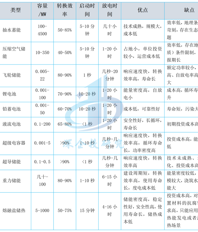 儲(chǔ)能技術(shù)呈現(xiàn)多元化發(fā)展格局,各有不同的應(yīng)用場(chǎng)景。每種儲(chǔ)能技術(shù)均具有一定的獨(dú)特性,在實(shí)際應(yīng)用中,需要用戶綜合考慮各種儲(chǔ)能技術(shù)的特點(diǎn)以及優(yōu)缺點(diǎn),選擇最適宜的技術(shù)方案。比如,飛輪儲(chǔ)能、超級(jí)電容、超導(dǎo)儲(chǔ)能可以解決秒級(jí)或分鐘級(jí)以下的調(diào)頻需求;抽水蓄能、壓縮空氣儲(chǔ)能、燃料電池和電化學(xué)儲(chǔ)能等則更適用于進(jìn)行小時(shí)級(jí)調(diào)峰;氫儲(chǔ)能適合執(zhí)行季節(jié)性調(diào)峰。不同儲(chǔ)能技術(shù)的特點(diǎn)如下表所示。
