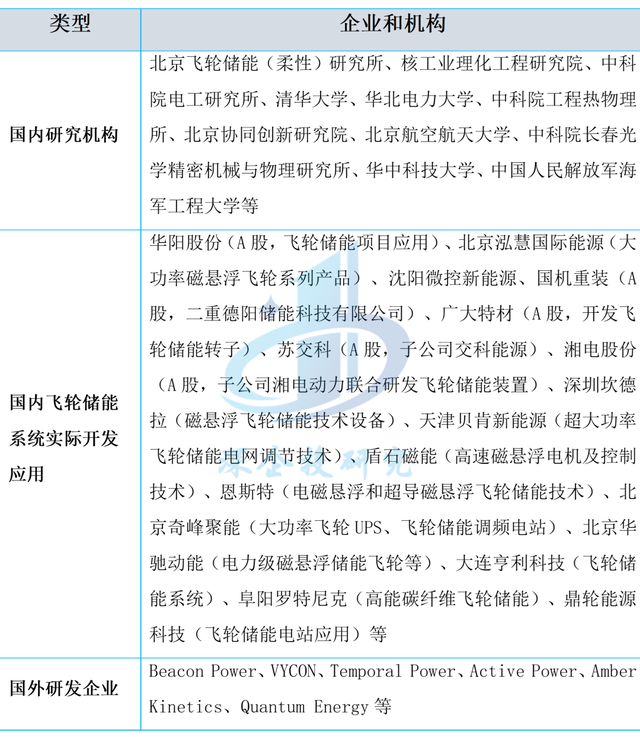表3 飛輪儲(chǔ)能系統(tǒng)和裝置開發(fā)應(yīng)用重點(diǎn)機(jī)構(gòu)