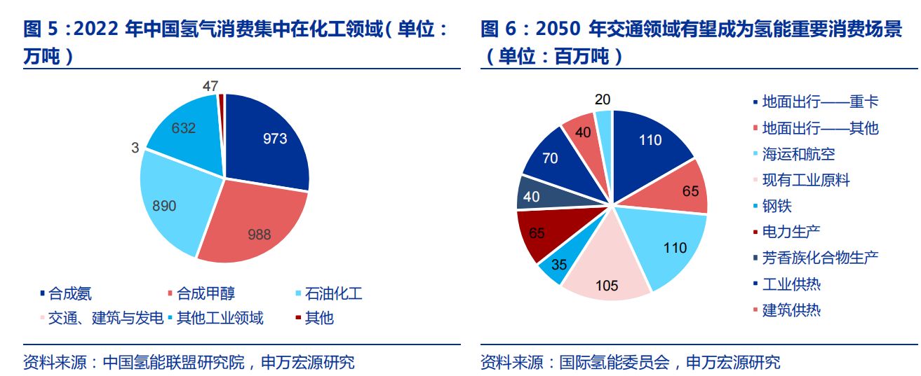 1)氫氣作為清潔能源,在碳中和愿景下需求較大:根據(jù)中國氫能聯(lián)盟研究院,預(yù)計到2050 年全球氫氣需求量將達到6.6 億噸,其中中國約為1.95 億噸(2022 年僅0.35 億噸)。