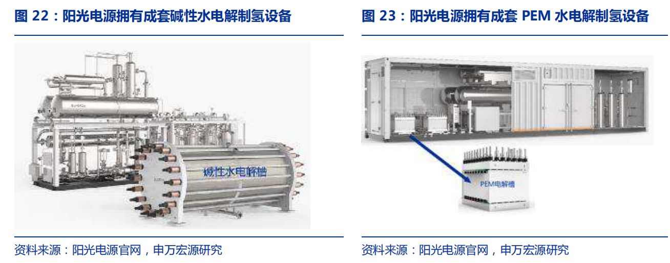 2)設(shè)備降本是氫能突圍的關(guān)鍵之一:當(dāng)前氫能產(chǎn)業(yè)受成本制約,在無補貼情況下,氫價及燃料電池汽車成本高于鋰電及燃油車,其中設(shè)備在各環(huán)節(jié)中占比較高(根據(jù)我們測算,大安風(fēng)光制氫項目中電解槽占總投資成本24%;加氫站建設(shè)中設(shè)備成本占比71%;氫能重卡中燃料電池成本占比52%);因此通過政策推動及產(chǎn)業(yè)端的規(guī)模效應(yīng)實現(xiàn)設(shè)備降本,是氫能產(chǎn)業(yè)鏈提高經(jīng)濟效益,實現(xiàn)產(chǎn)業(yè)突破的關(guān)鍵;