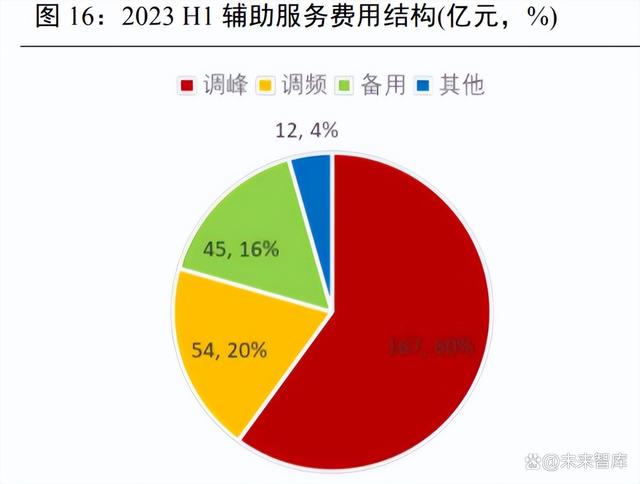 火電輔助服務(wù)收費(fèi)仍有較大增長(zhǎng)空間,與容量電費(fèi)一起抬高火電機(jī)組收入底部空間。2023年上半年,我國(guó)電力輔助服務(wù)收費(fèi)合計(jì) 278 億元,其中:調(diào)峰補(bǔ)償167 億元,占比60.0%;調(diào)頻補(bǔ)償 54 億元,占比 19.4%;備用補(bǔ)償 45 億元,占比 16.2%,其他輔助服務(wù)收費(fèi)12億元,占比 4.4%。火電機(jī)組仍是輔助服務(wù)的主要提供方,2023 年上半年火電企業(yè)獲得輔助服務(wù)補(bǔ)償254 億元,占比 91.4%。即,我國(guó) 2023 年輔助服務(wù)費(fèi)年化 556 億元,其中火電獲得508億元。