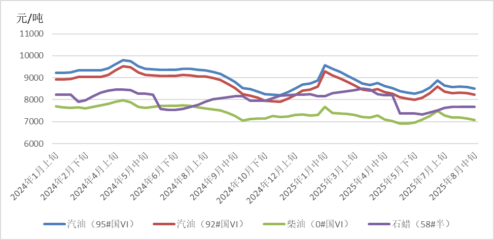8月中旬,IEA上調(diào)全球石油供應過剩預期,美國能源信息署(EIA)預測2025年美國原油日產(chǎn)量將創(chuàng)1341萬桶紀錄,夏季駕駛旺季臨近尾聲原油需求下降預期增強,中美關(guān)稅暫停措施再延長90天等因素推動國際油價延續(xù)下跌態(tài)勢。然而,市場對美聯(lián)儲9月降息的預期增強,阿拉斯加美俄峰會并未取得實質(zhì)性進展,俄烏局勢不確定性推升地緣風險溢價,受上述因素影響,國際油價跌幅有所收窄。